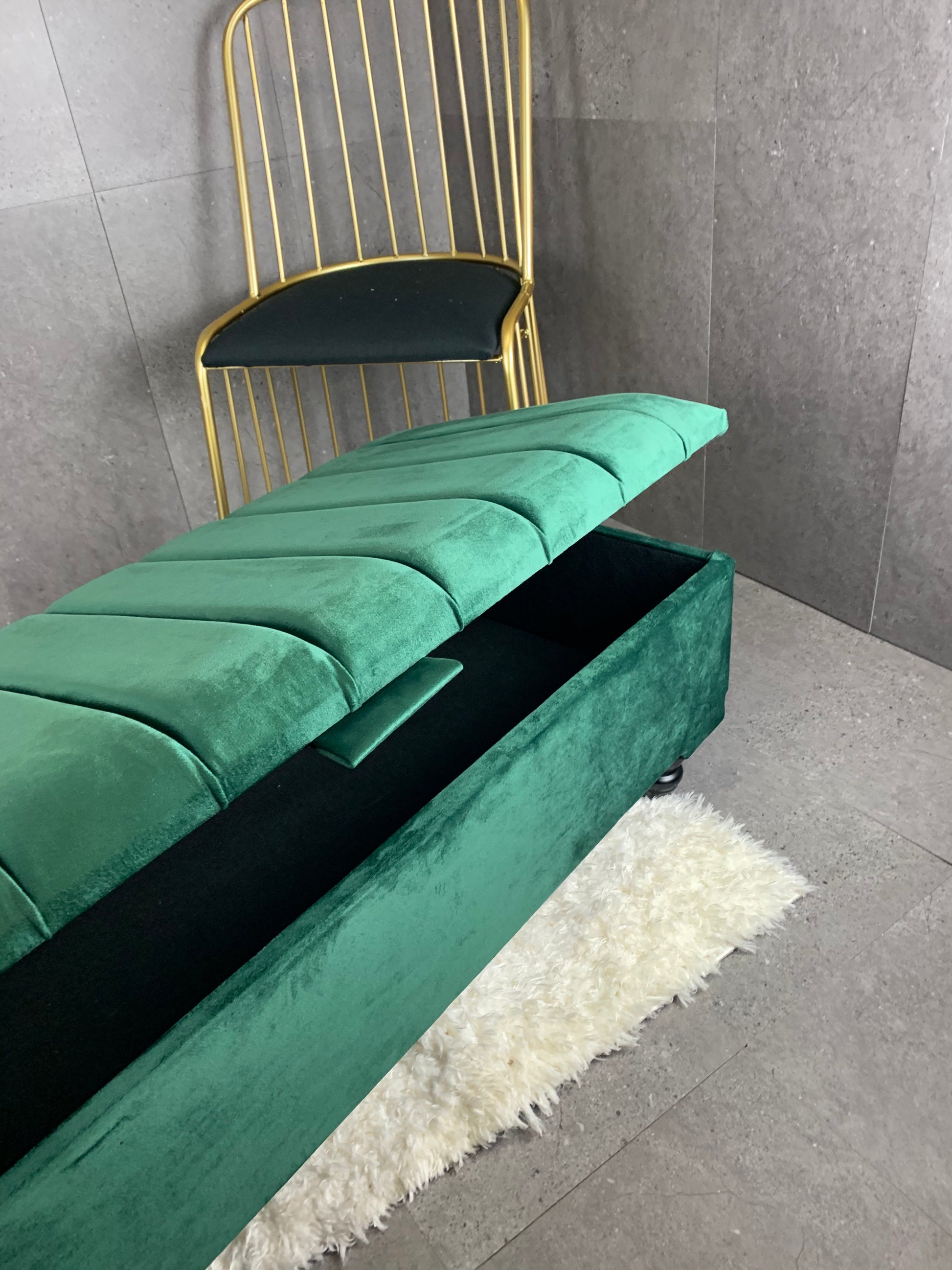 Bedrooms as an end-of-bed storage bench.